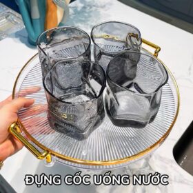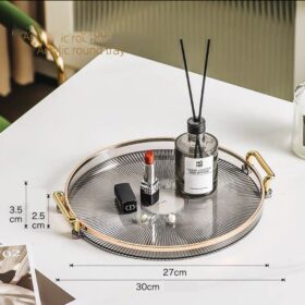 Khay Mâm ÚP LY, ĐỰNG HOA QUẢ HÌNH TRÒN (M14) có tay cầm viền vàng sang trọng chất liệu nhựa Acrylic cao cấp