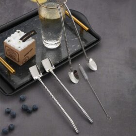 Ống hút kèm muỗng inox 304 nhiều màu siêu xinh tiện lợi 22cm