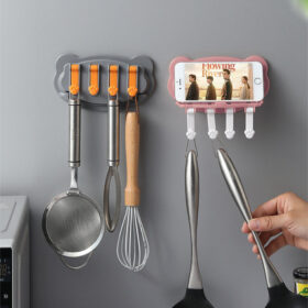 Kệ treo đa năng (K20) dán tường kèm 4 móc bàn chân, treo vật dụng nhà bếp, nhà tắm giá đỡ điện thoại