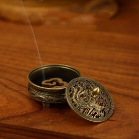 Hộp Đốt Nhang Trầm Không Tăm – Khay Xông Nhang Bằng Đồng Cao Cấp Chạm Hoa Văn Tinh Xảo