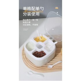Hộp Gia Vị 4 Ngăn 2 lớp (4N2) có tay cầm tiện lợi kèm muỗng