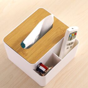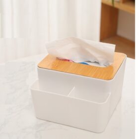Hộp Đựng Khăn Giấy Mặt Gỗ Có 2 Ngăn Để Vật Dụng -H2