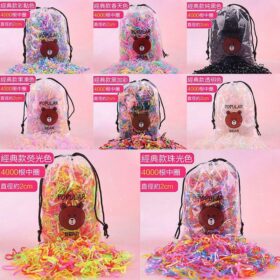 Túi 4000 dây chun buộc tóc cho bé nhiều màu đựng trong túi rút gấu dễ thương