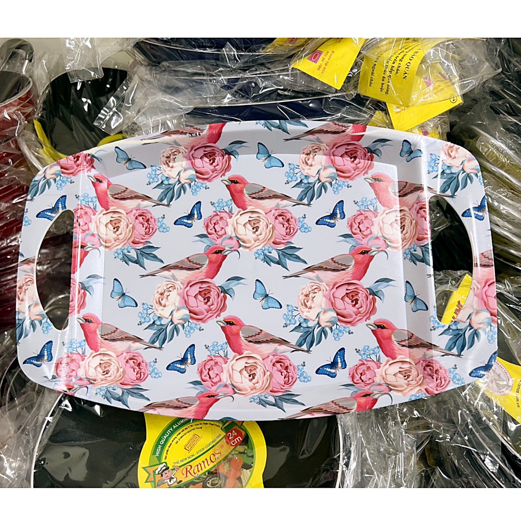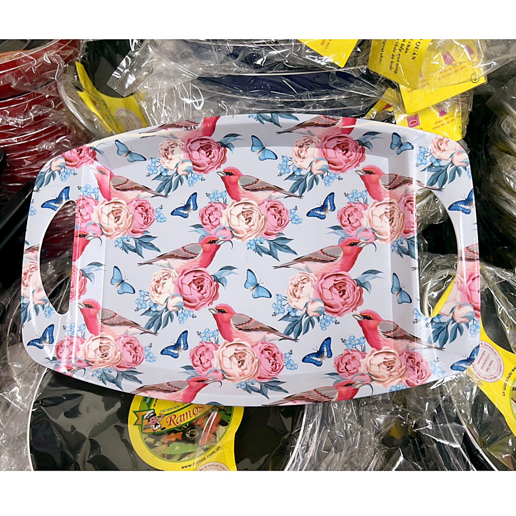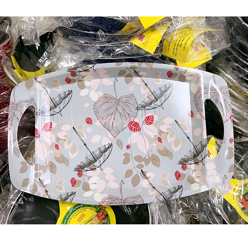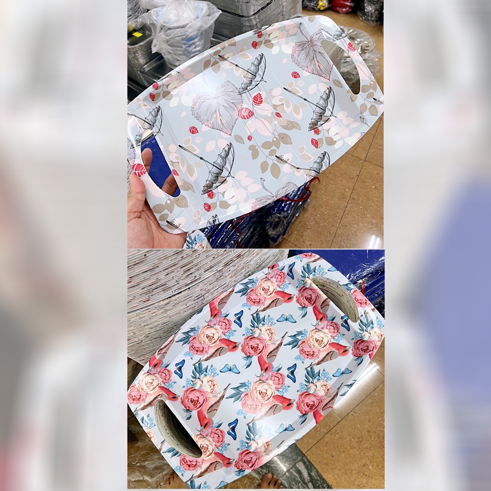 Mâm nhựa có tay cầm (M11) đựng trái cây, đồ ăn họa tiết hoa văn sang trọng