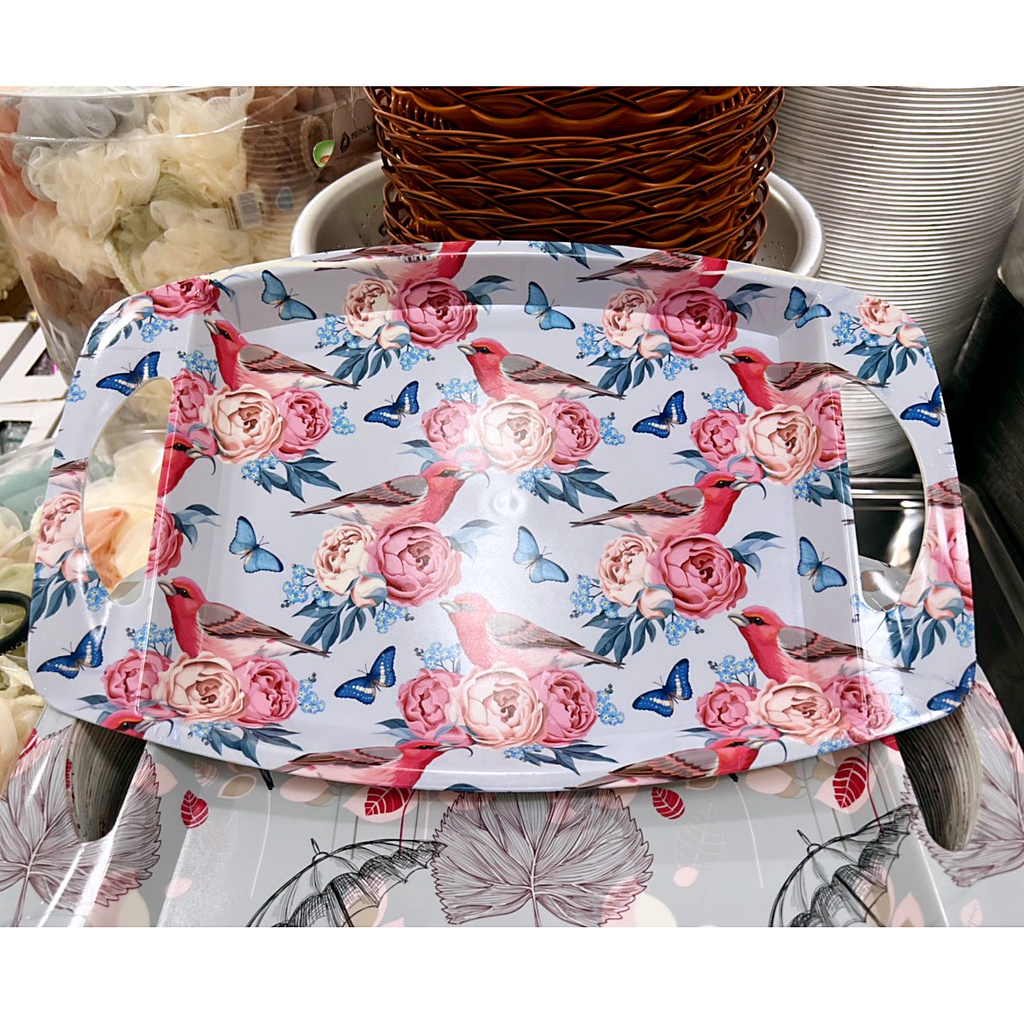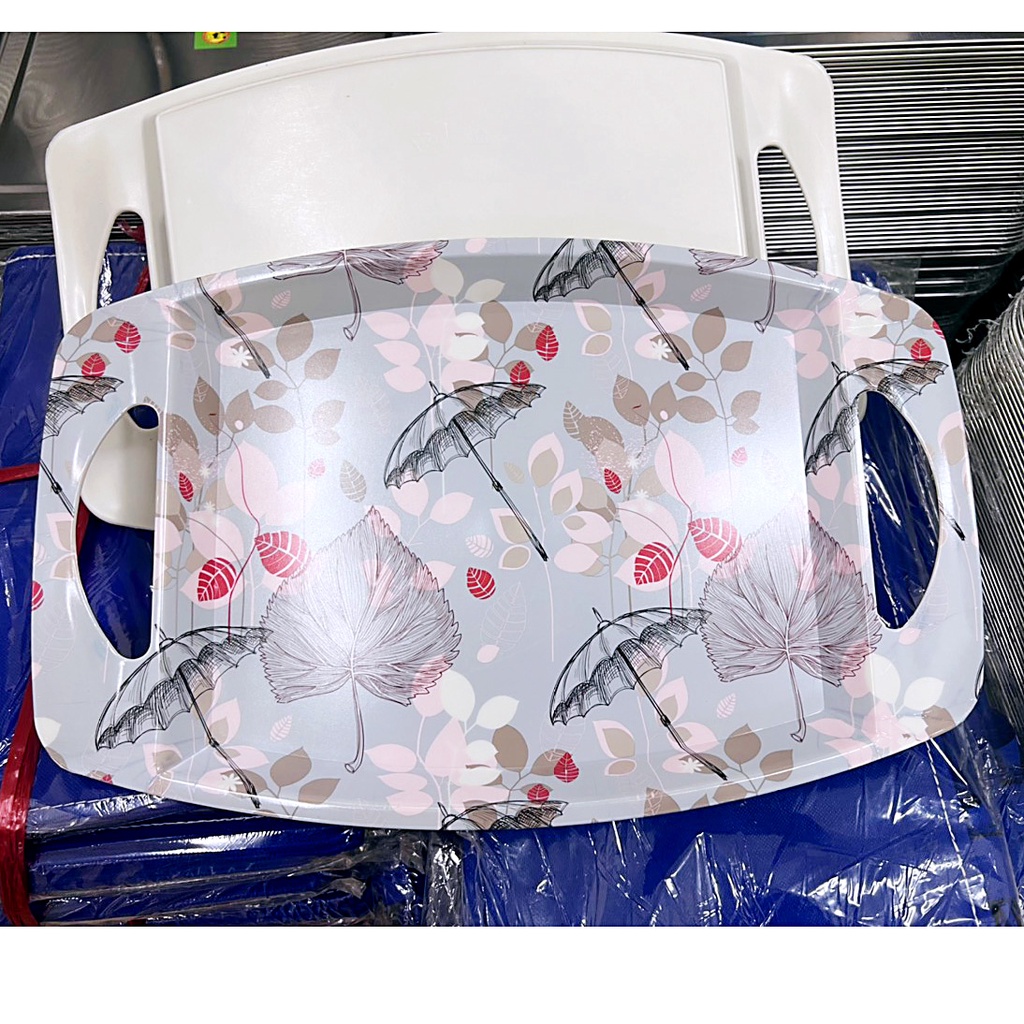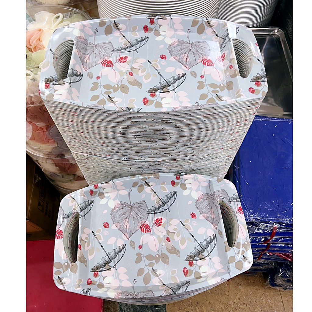 Mâm nhựa có tay cầm (M11) đựng trái cây, đồ ăn họa tiết hoa văn sang trọng