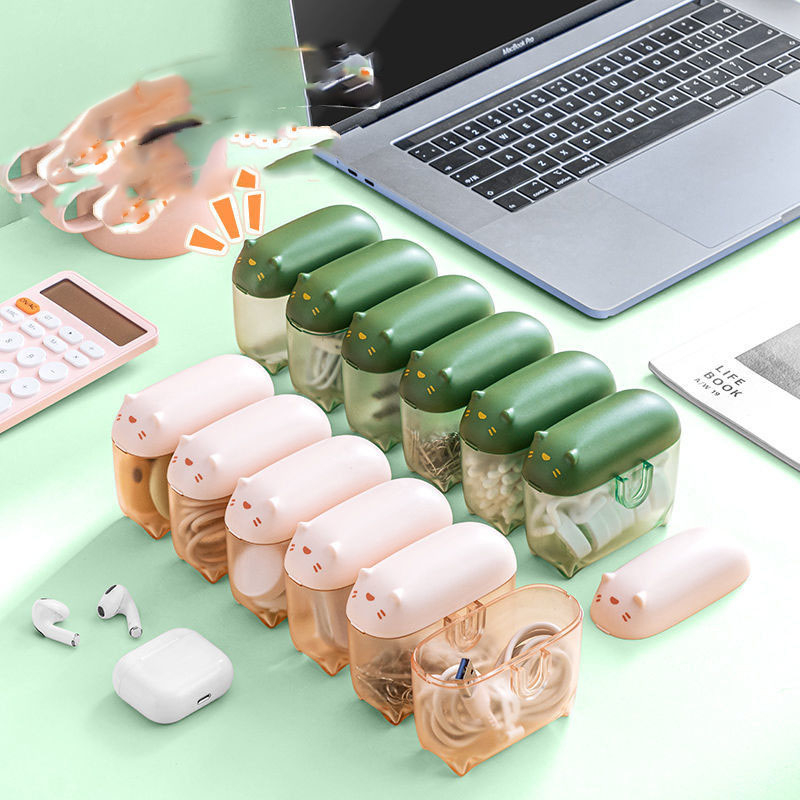 Hộp đựng Cáp Sạc phụ kiện điện thoại hoạ tiết CHÚ MÈO trong suốt nhám sang trọng