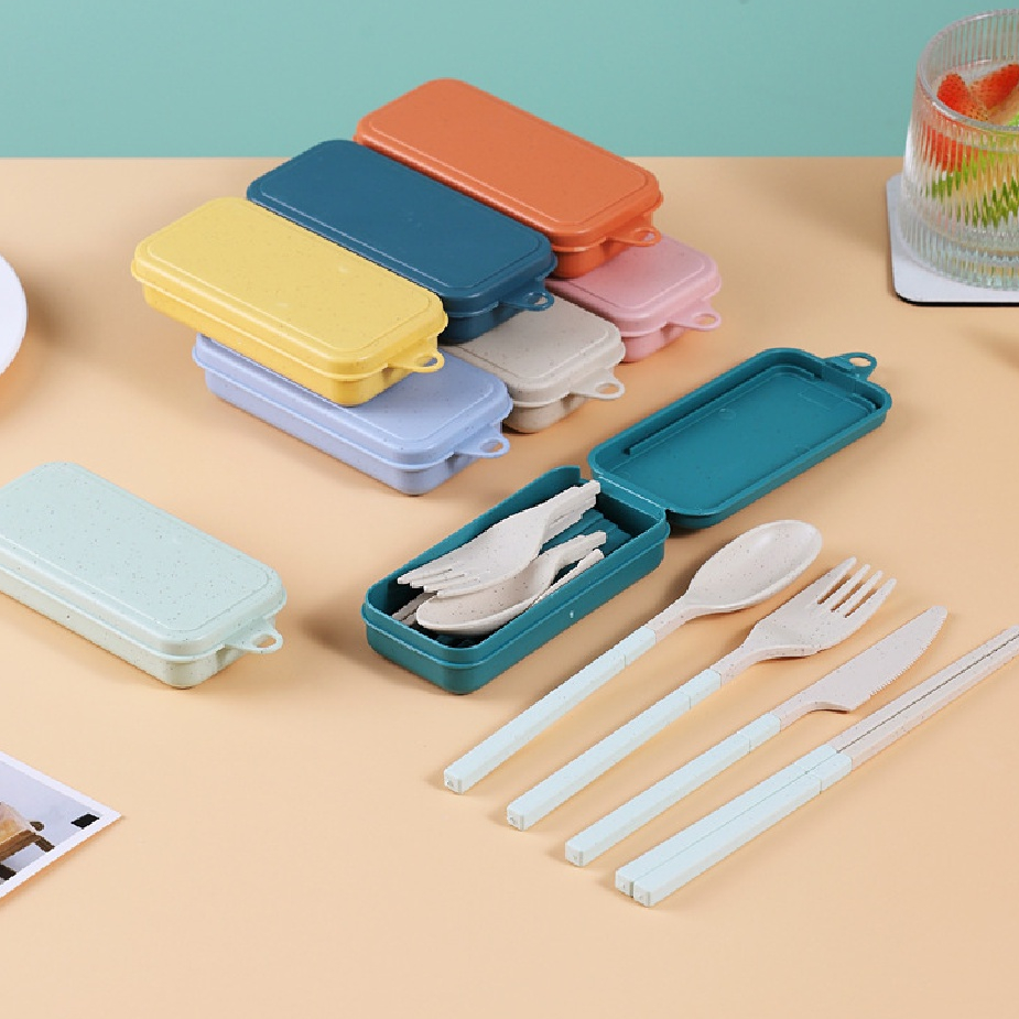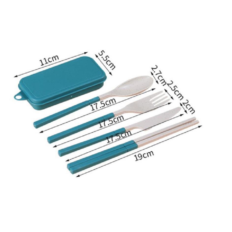 Bộ 4 món muỗng đũa nĩa lúa mạch Phiên Bản Lắp Ráp kèm hộp nhỏ gọn du lịch tiện lợi