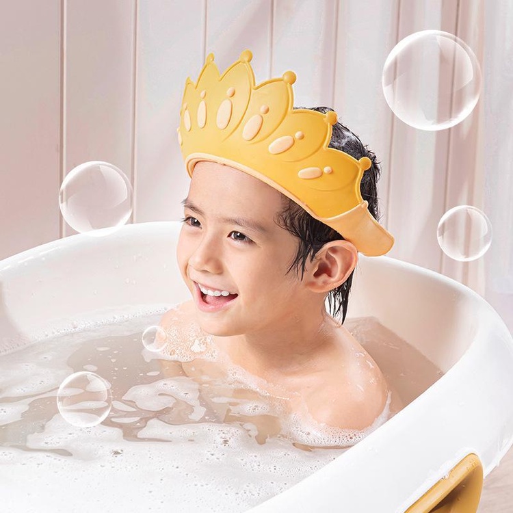 Mũ Gội Đầu (ĐẾ VƯƠNG) Chắn Nước Silicone Chống Nước Vào Tai, Mắt Có Thể Điều Vòng Đầu Cho Bé 1-8 tuổi