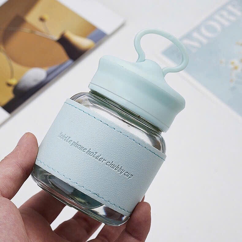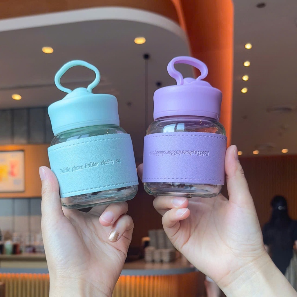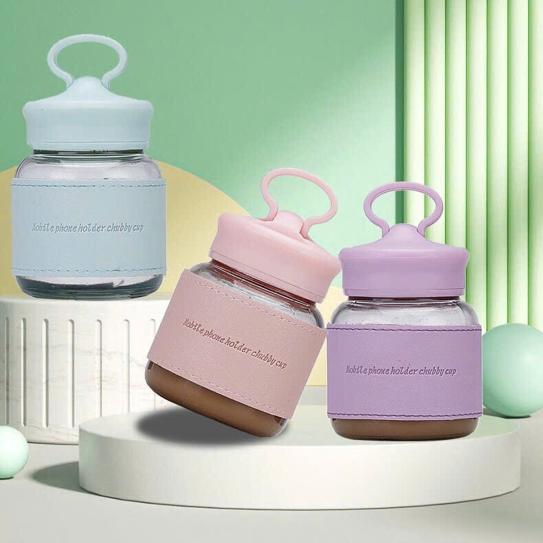 Bình thuỷ tinh Chuppy kèm nắp có khe để điện thoại đa năng 300ml – thiết kế cute pastel