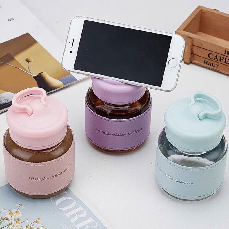 Ly thuỷ tinh mini kèm giá đỡ điện thoại siêu tiện lợi