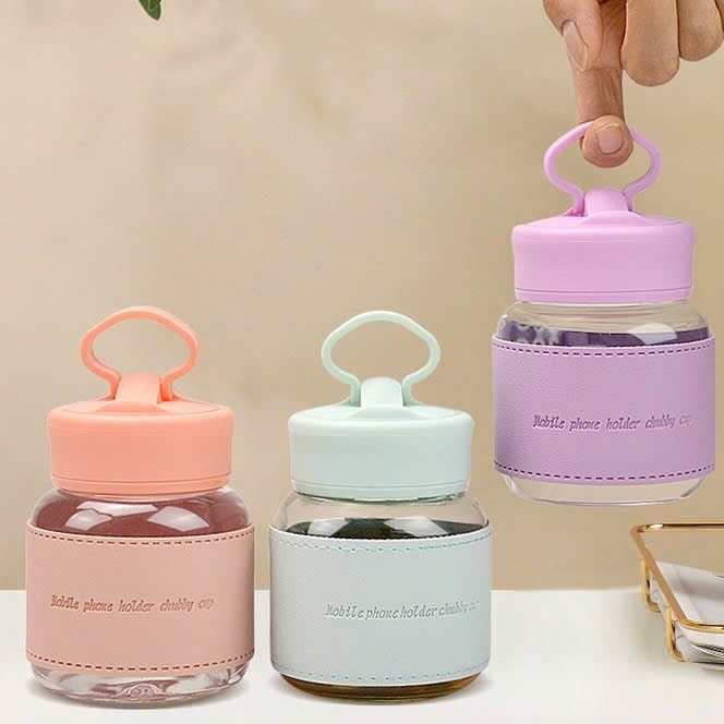 Bình thuỷ tinh nhỏ gọn với nắp silicon hình kẹo siêu dễ thương, phối màu pastel nhẹ nhàng cực xinh, phù hợp với mọi phong cách học sinh, sinh viên hay dân văn phòng.