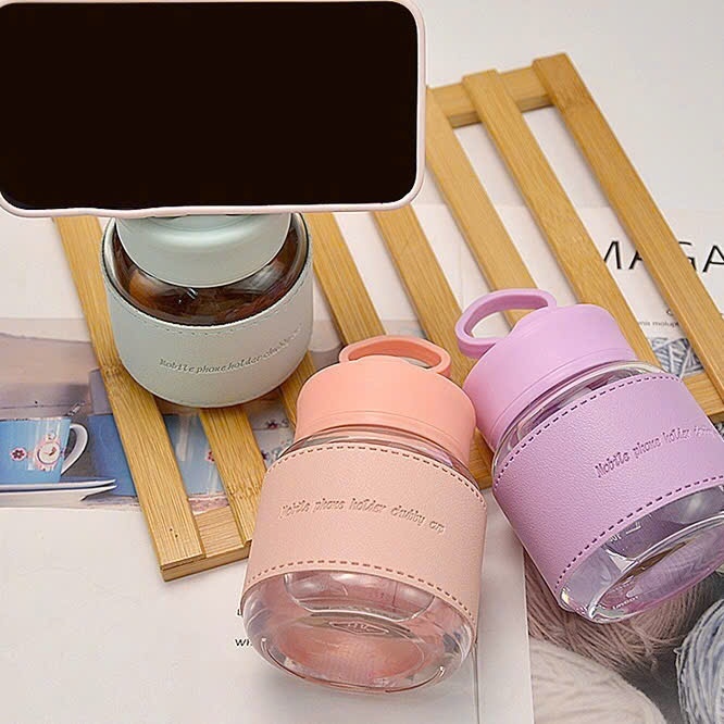 Chai đựng nước kèm ốp da + đỡ điện thoại, phong cách Hàn