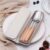 -Hộp đũa muỗng nĩa lúa mạch nhỏ gọn có hộp chắc chắn đựng xinh xắn, tiện lợi cho bé đem theo khi tới trường, hoặc khi đi chơi, đi du lịch; hoặc cho các mẹ đem cơm văn phòng.