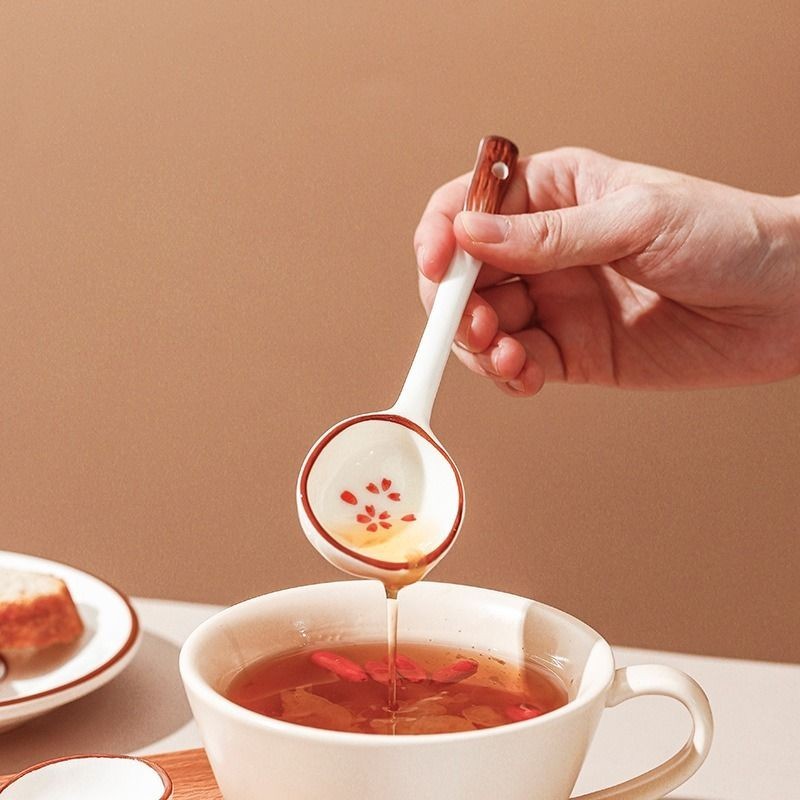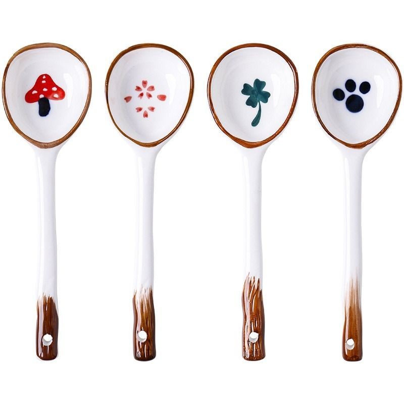 Muỗng ăn súp bằng sứ sáng bóng cao cấp in họa tiết phong cách