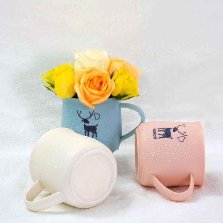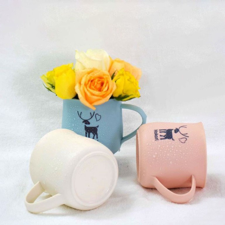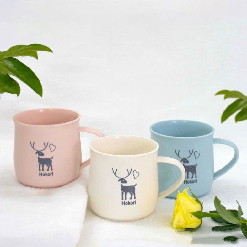 Ly Cốc nhựa hokori chịu nhiệt cao cấp – Cốc nhựa có quai cầm in hình chú hươu dễ thương– 01454