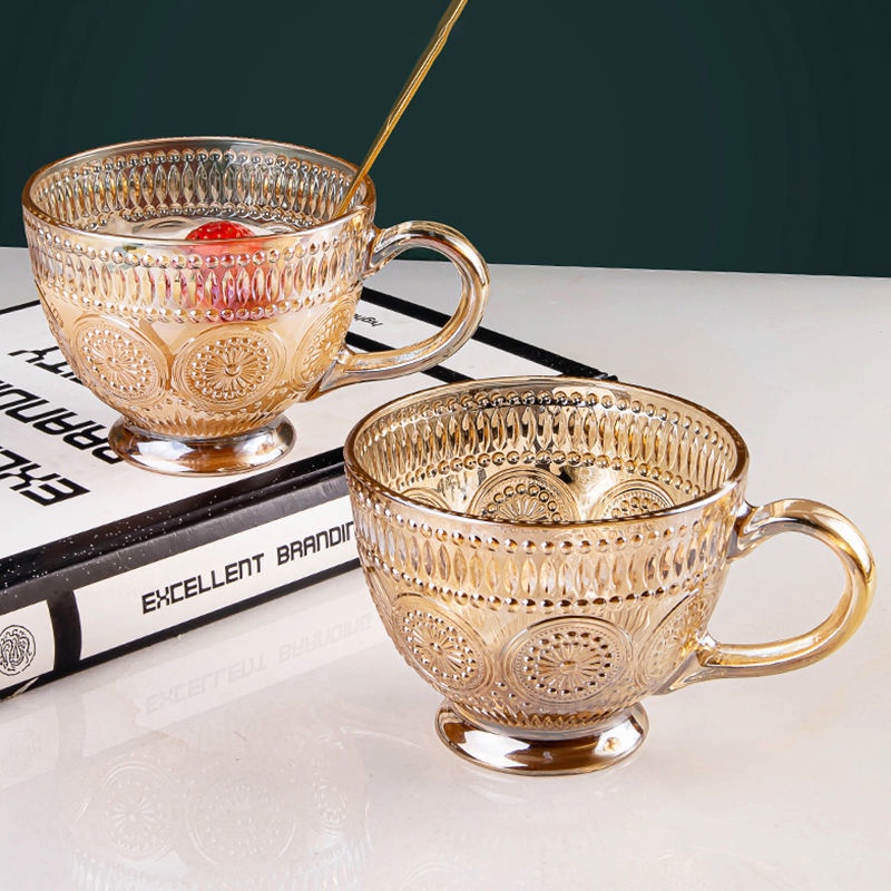 Cốc khắc cổ điển! Tôi khuyên bạn nên dùng loạt các cốc nước dập nổi theo phong cách cổ điển và từ từ này. Nó có cảm giác cung điện. Nó được làm bằng kính không chì chất lượng cao, có thành dày và cảm giác cầm tay thoải mái. Nhiều kiểu dáng giúp nước uống tinh tế hơn!