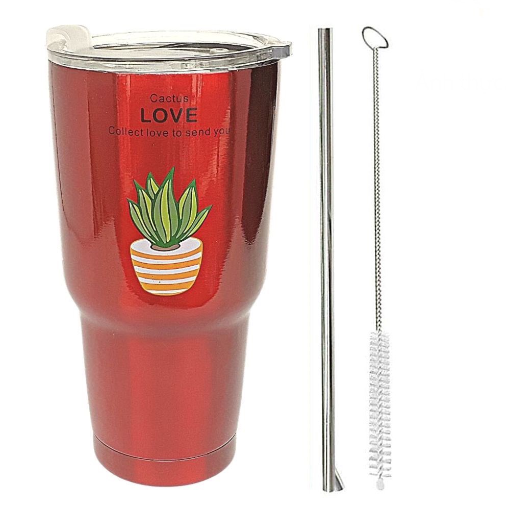 Combo Ly Giữ Nhiệt Tặng Kèm Ống Hút Inox + Nắp Chống Tràn + Cọ Rửa