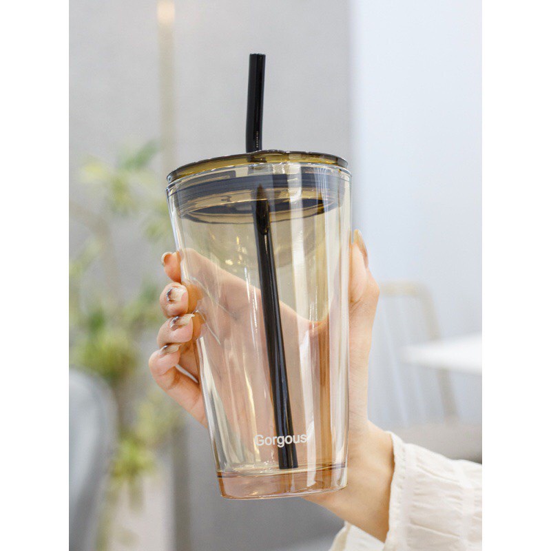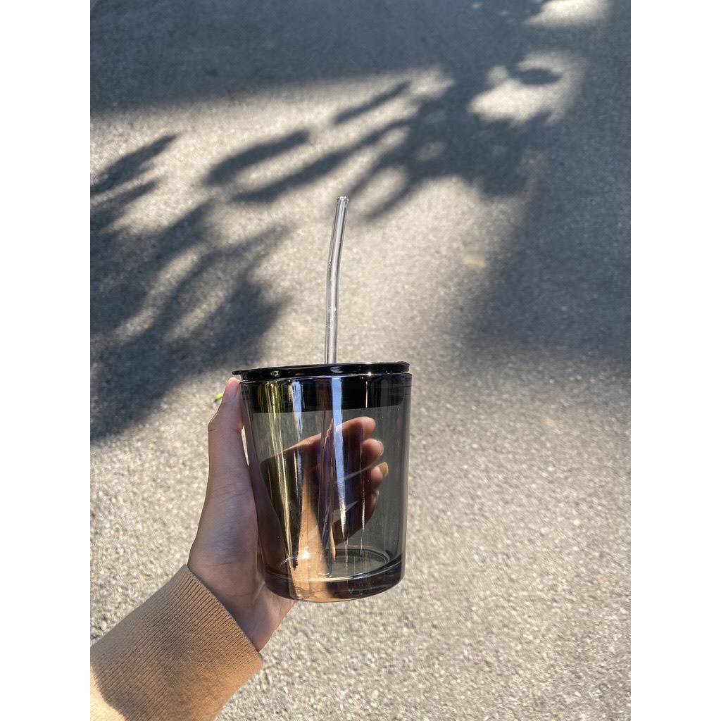 Ly Cốc CAFE Thủy Tinh Văn Phòng G12, ly màu hổ phách chống tràn chịu nhiệt kèm ống hút thủy tinh