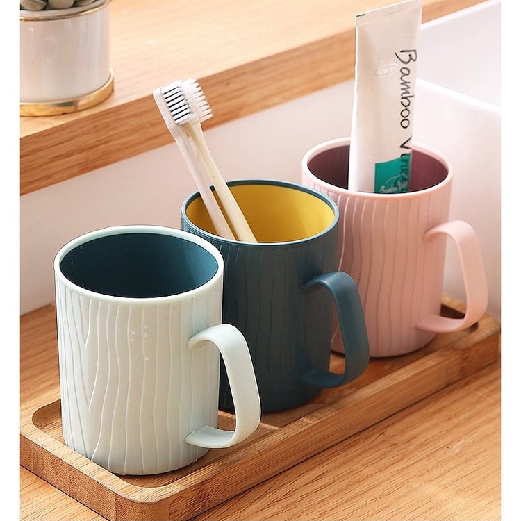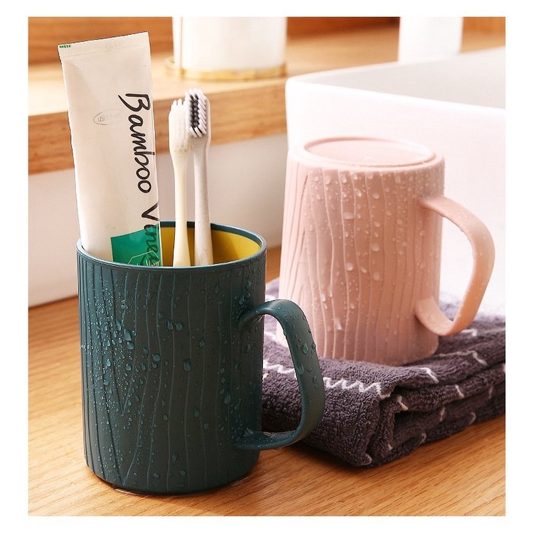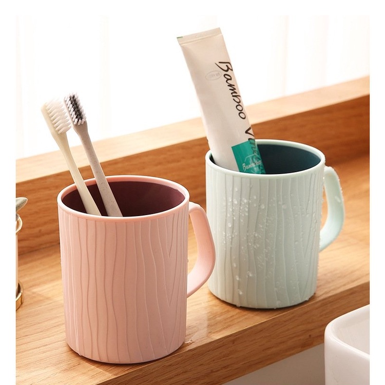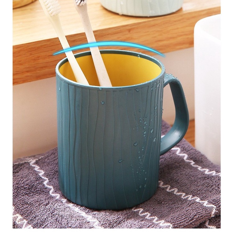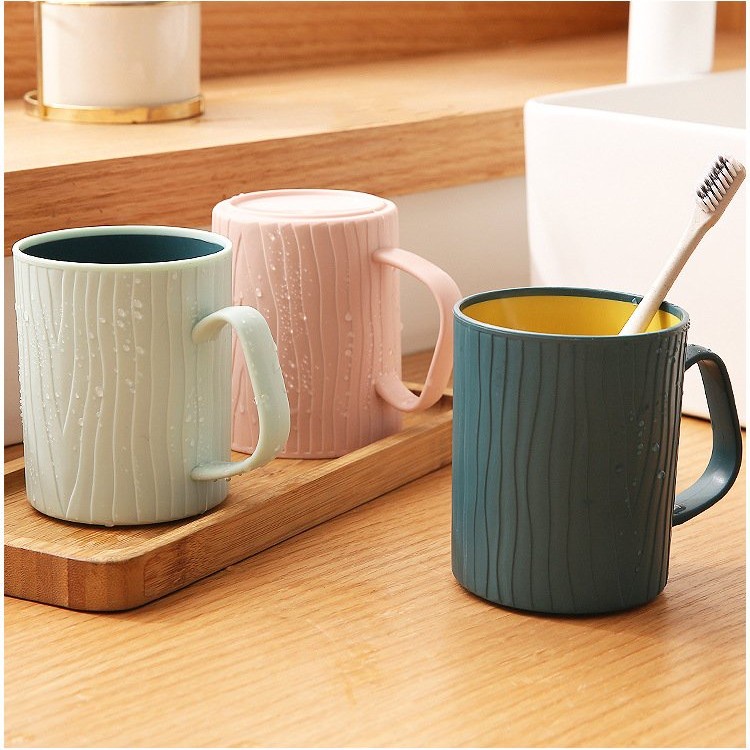 Ly cốc nhựa 2 lớp có quai cầm VÂN GỖ THÂN CÂY tiện lợi dùng để uống nước, súc miệng
