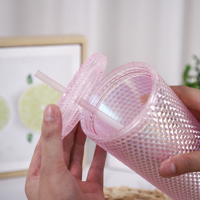 Ly Kim Cương Dáng Cao (T12/T13) 2 lớp cao cấp cách nhiệt, tặng kèm ống hút