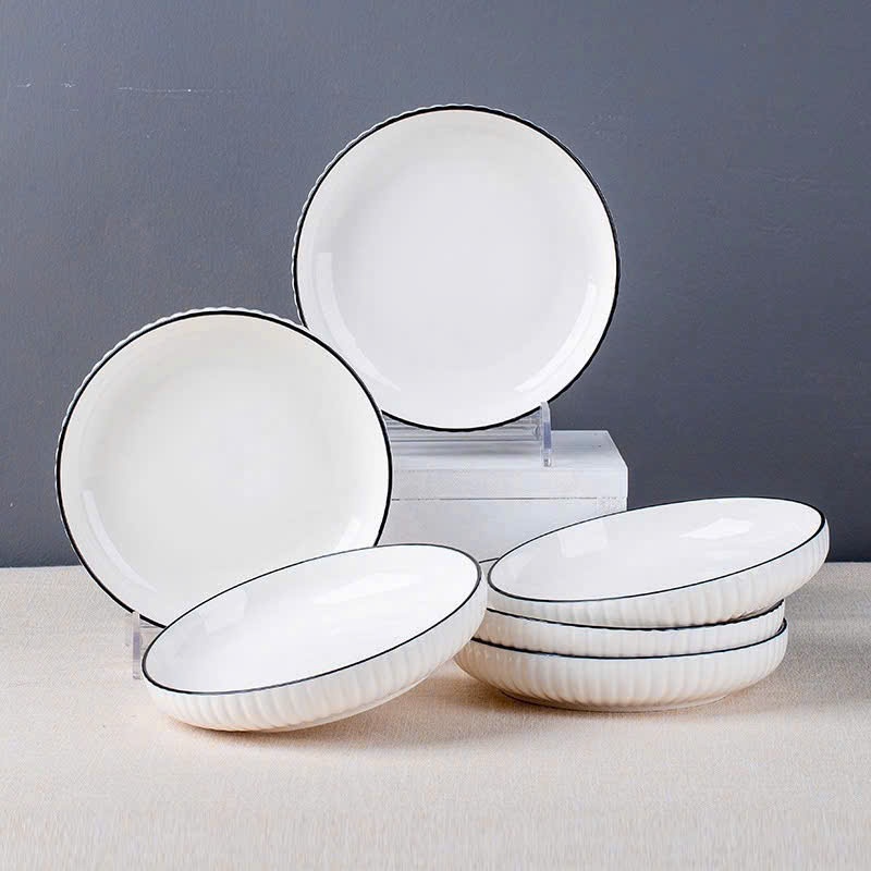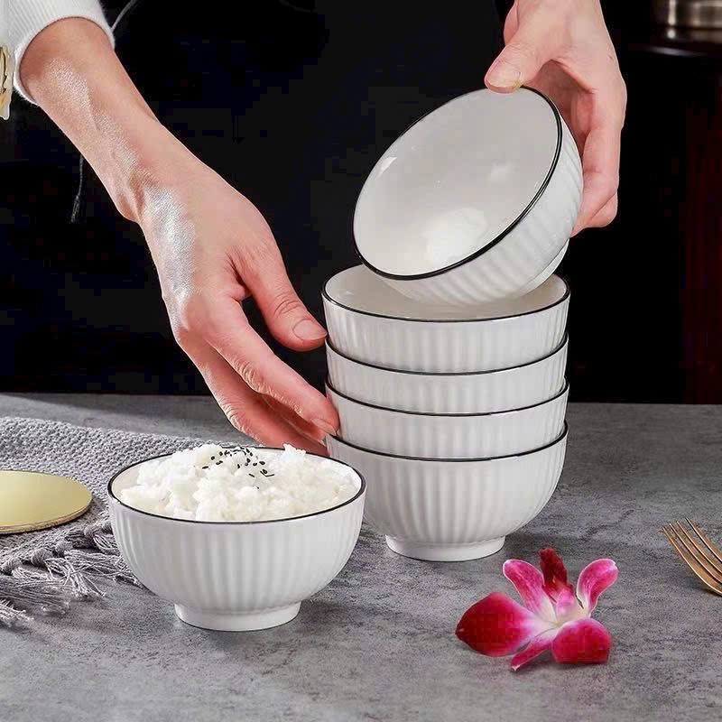 Bộ Bát Chén Đĩa Sứ Viền Đen Tối Giản, Hiện Đại, Sang Trọng – Chống Xước, Dễ Vệ Sinh, Dùng Được Lò Vi Sóng