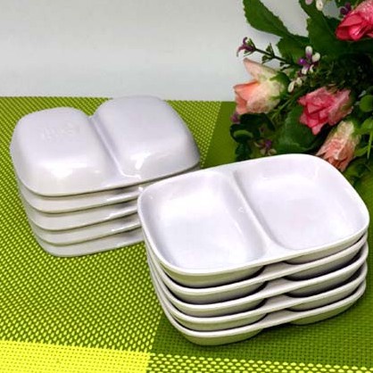 Chén Chấm Nhựa Phíp 2 Ngăn đựng gia vị nước chấm, đĩa đựng gia vị 2 ngăn