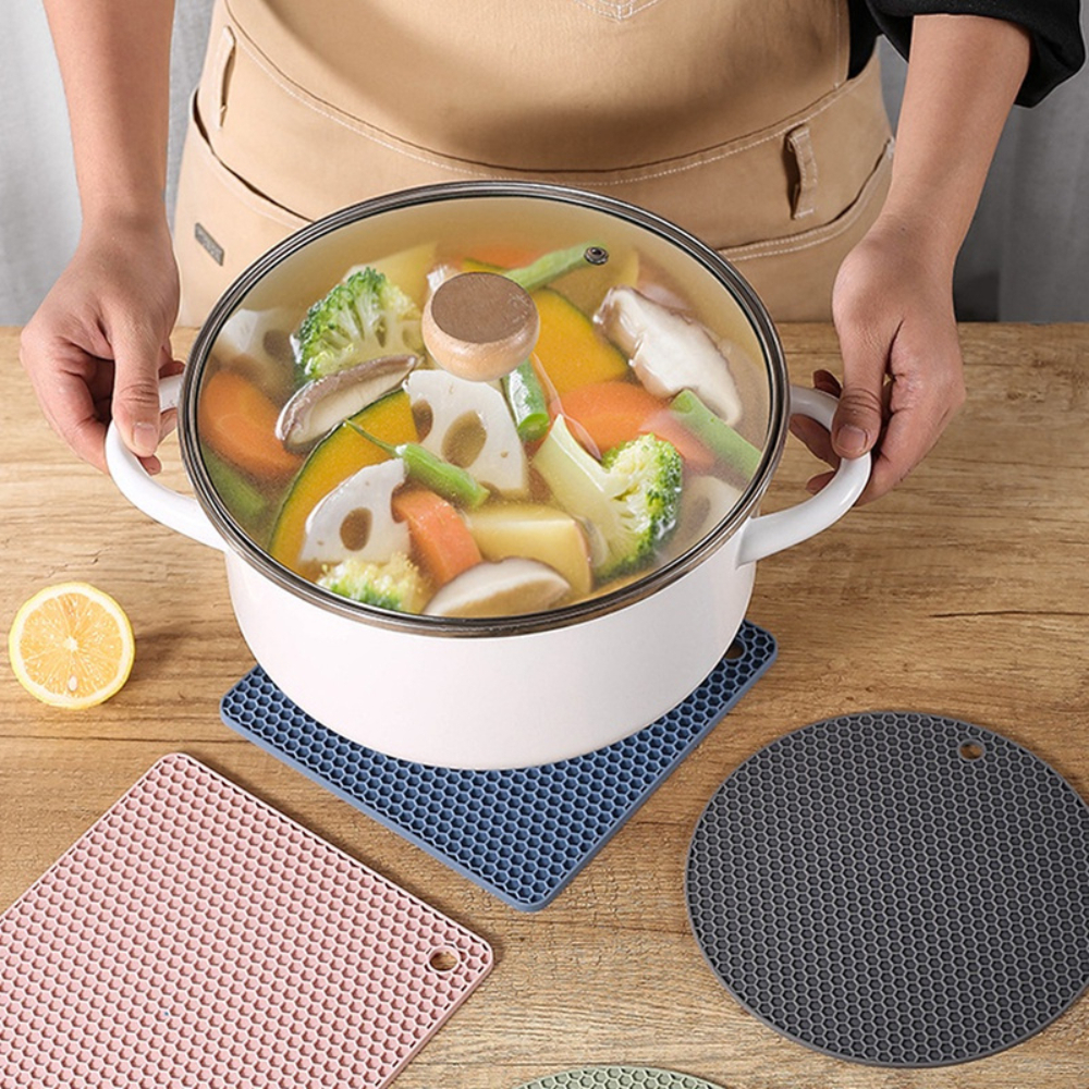 – Bề mặt thiết kế dạng tổ ong tăng ma sát, chống trượt khi để nồi, chảo hay bát đựng đồ ăn trên bàn ăn gia đình.