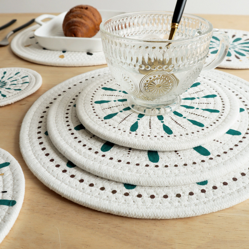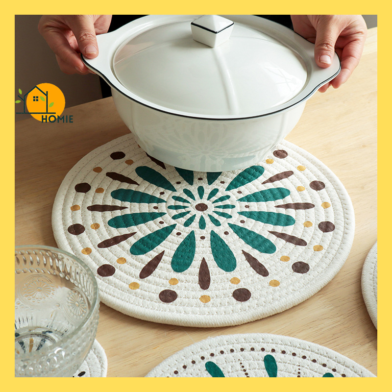 Tấm Lót Ly Cốc, Lót Đĩa, Lót Nồi Vải Cotton Trang Trí Bàn Ăn In Hoa Văn Phong Cách Bắc Âu