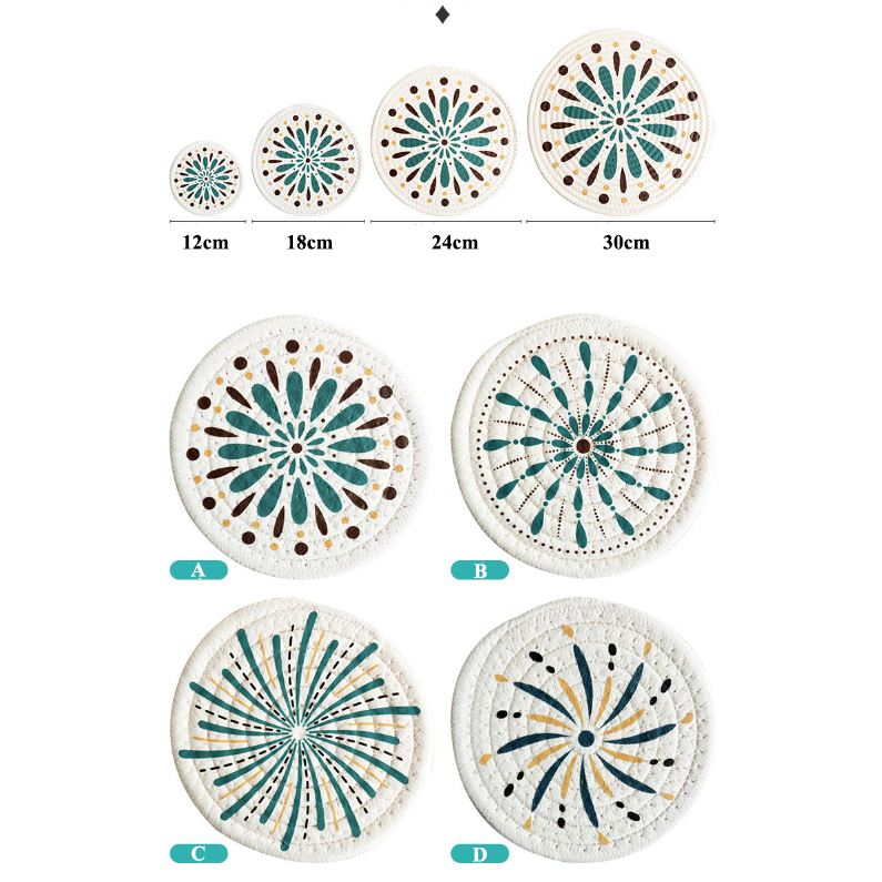 Tấm Lót Ly Cốc, Lót Đĩa, Lót Nồi Vải Cotton Trang Trí Bàn Ăn In Hoa Văn Phong Cách Bắc Âu———————————————————————