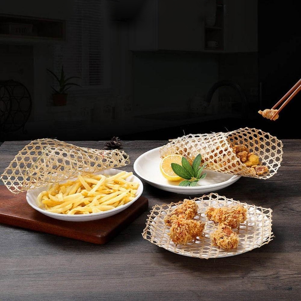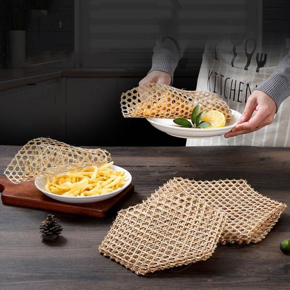 Tấm Lưới Tre Đan, Thảm Lót Tre Handmade, Giỏ Hấp Lục Giác Tấm Trang Trí Món Ăn