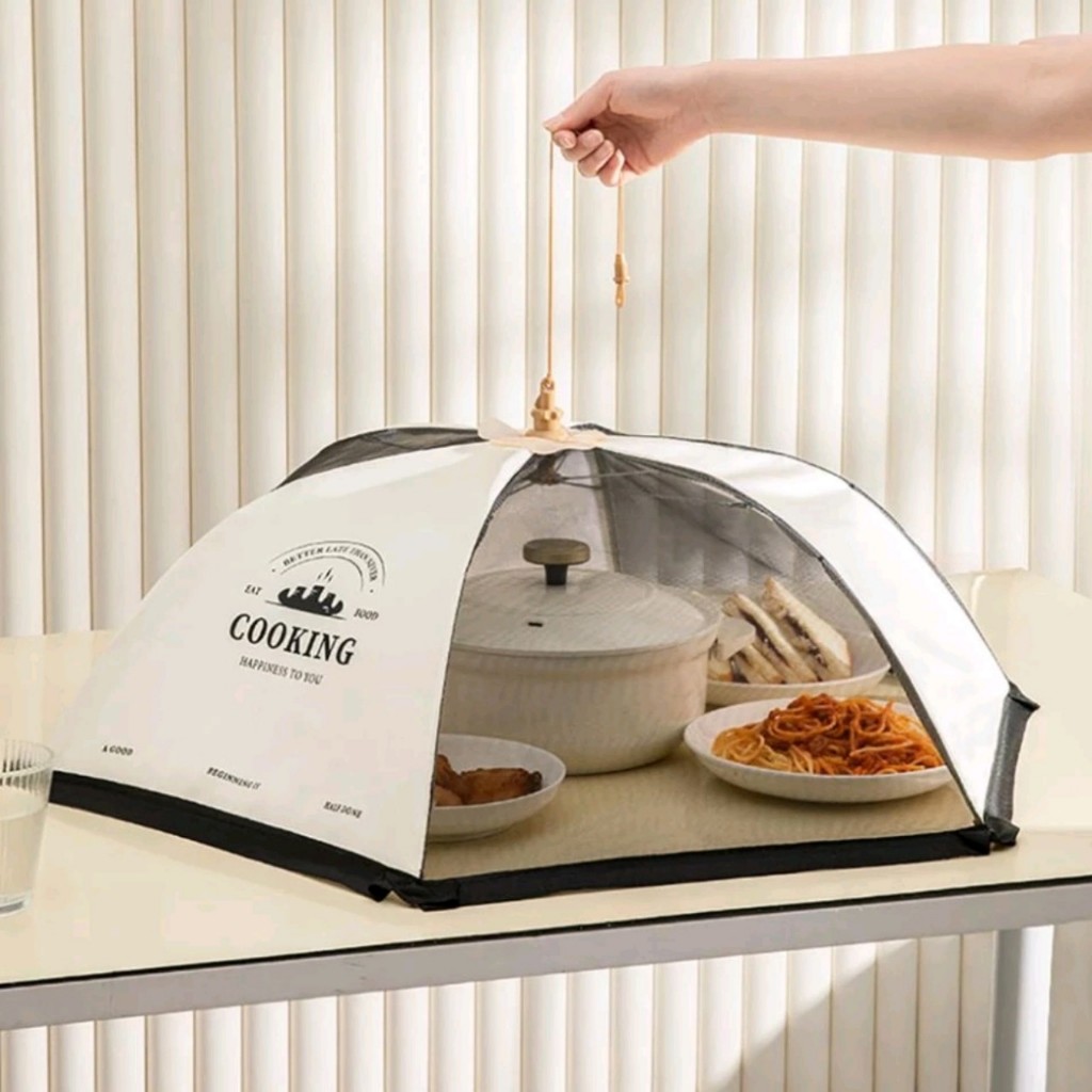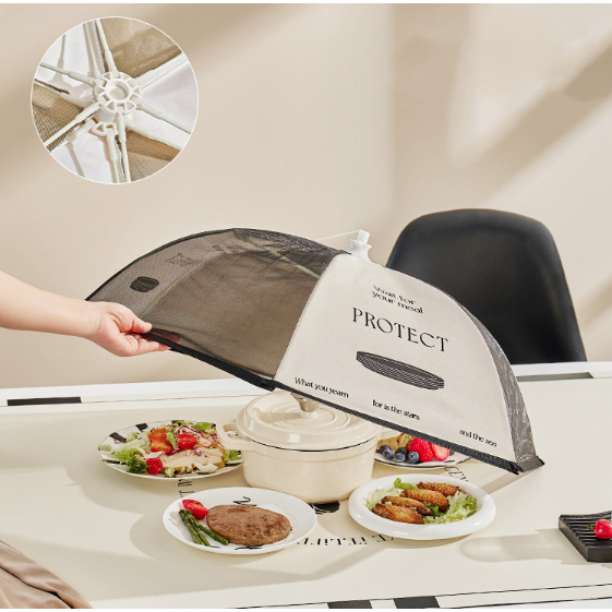 Lồng bàn gấp gọn hình tròn, đậy thực phẩm, dễ dàng mở và xếp gọn như 1 chiếc ô.