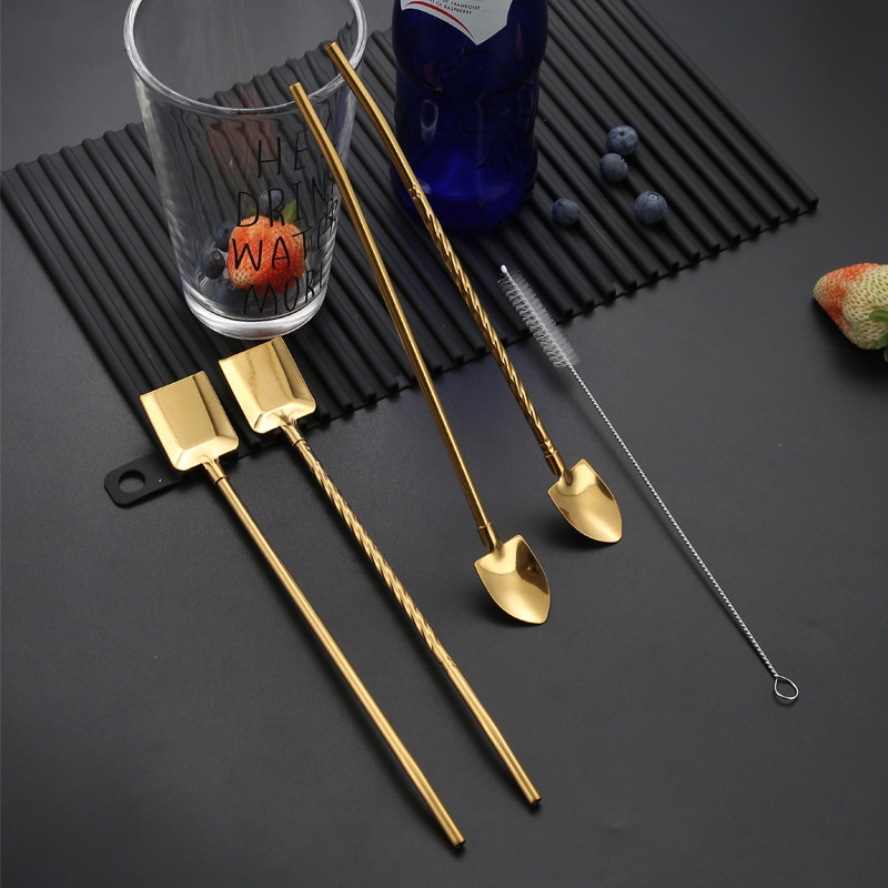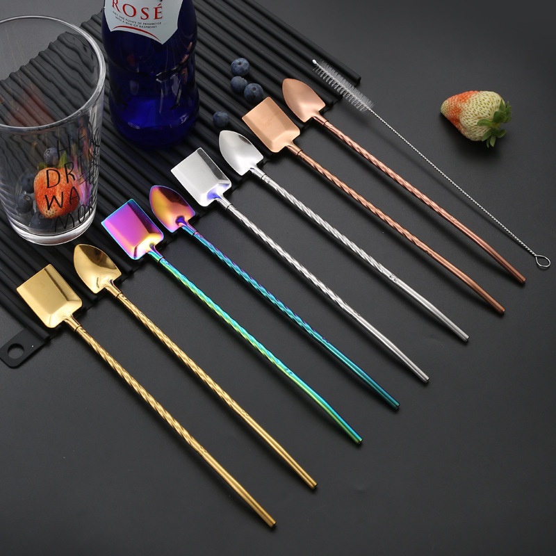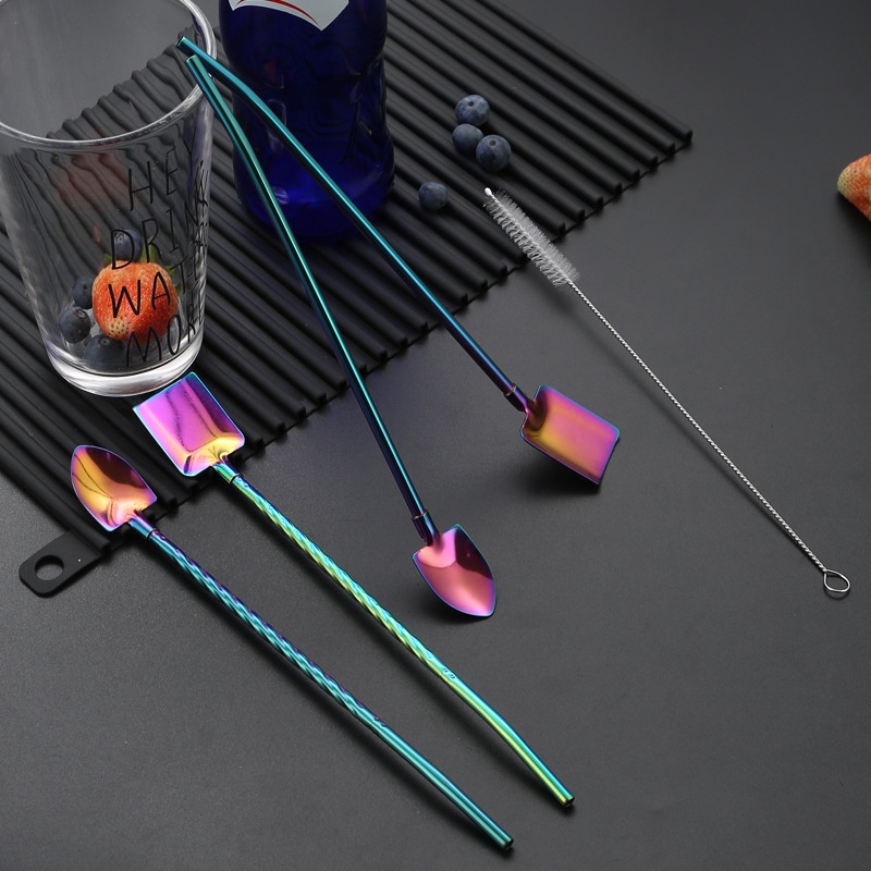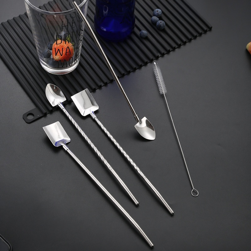 Ống hút inox 304 kèm muỗng tiện lợi, thìa kiêm ống hút nhiều màu vừa hút vừa khuấy