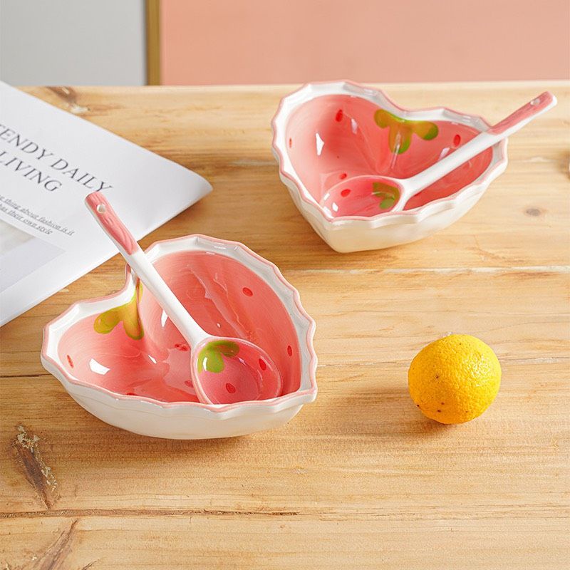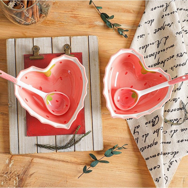 Chén Bát Sứ Hình Tim, Bát Kèm Thìa Sứ Cao Cấp,trang trí,decor
