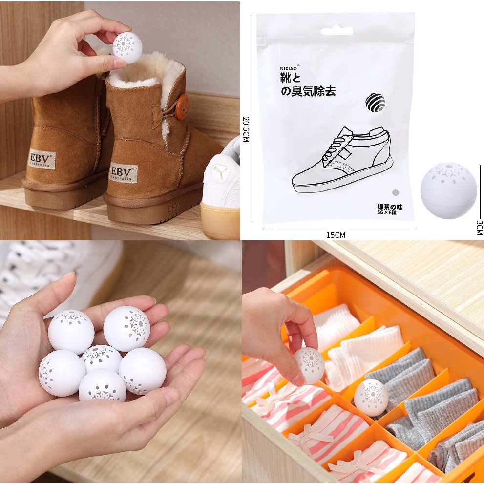 Gói 6 viên khủ mùi giày, khủ mùi tủ đồ, khử mùi nhà tắm hương thơm dịu mát