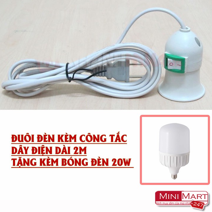 Bộ Đuôi Đèn Kèm Công Tắc Dây Điện Dài 2m Tặng Kèm Bóng Đèn Búp 15W