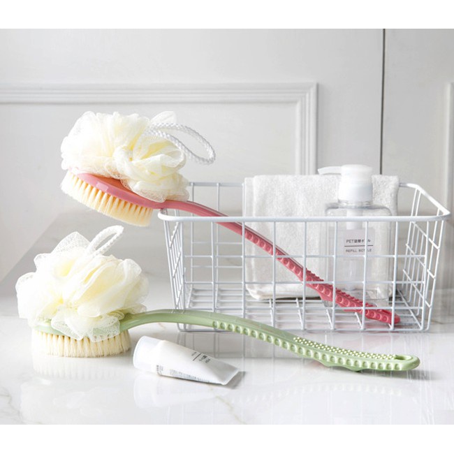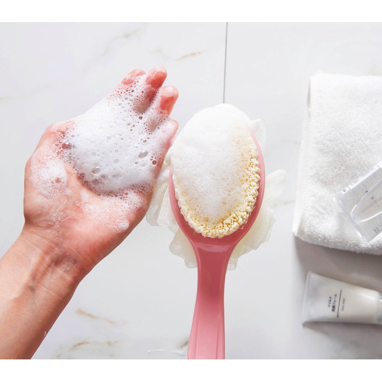Cây Bông Tắm Chà Lưng/ Bàn Chải Chà Lưng Kèm Bông Tắm 2 Trong 1
