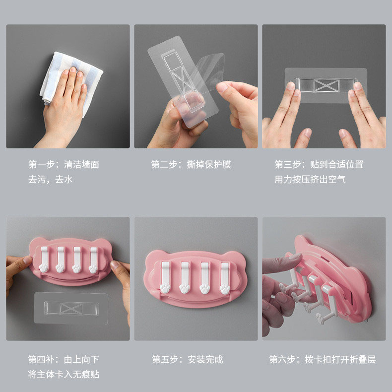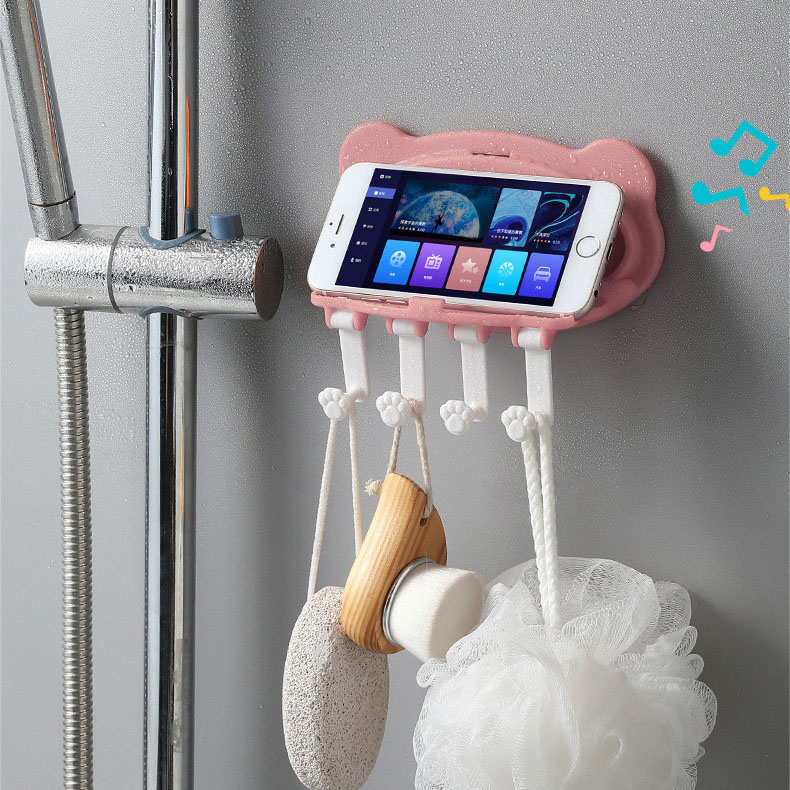 Kệ treo đa năng (K20) dán tường kèm 4 móc bàn chân, treo vật dụng nhà bếp, nhà tắm giá đỡ điện thoại