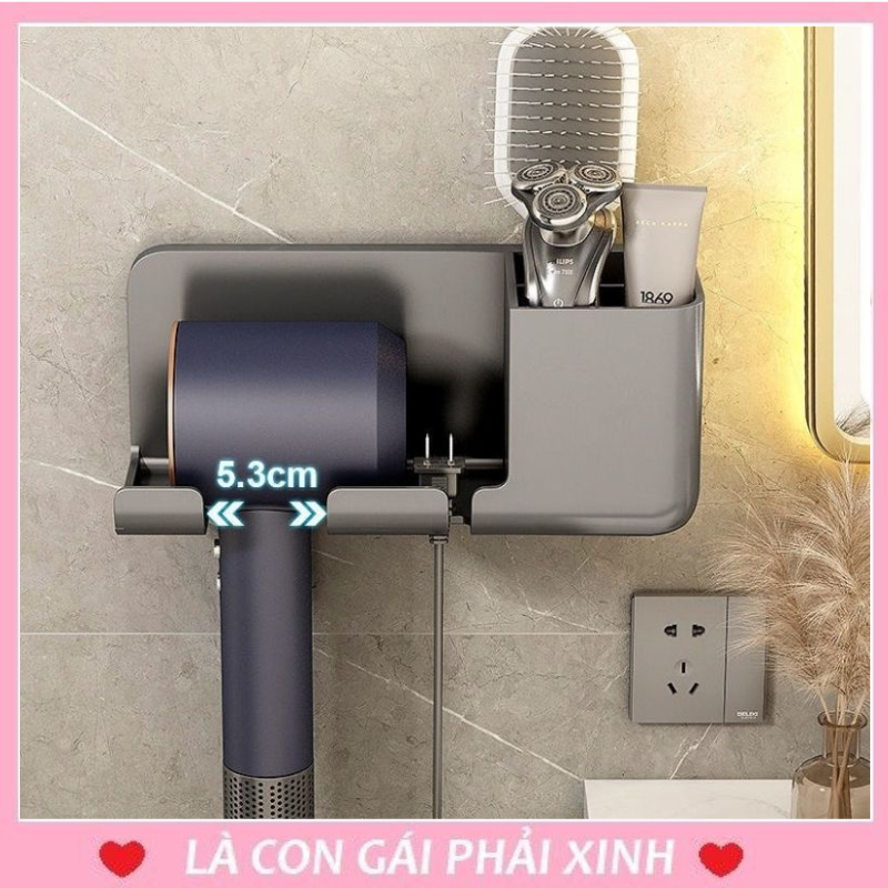 Kệ treo máy sấy tóc kèm khay đựng vật dụng chịu lực, kệ treo máy sấy tóc phòng tắm (MS2)