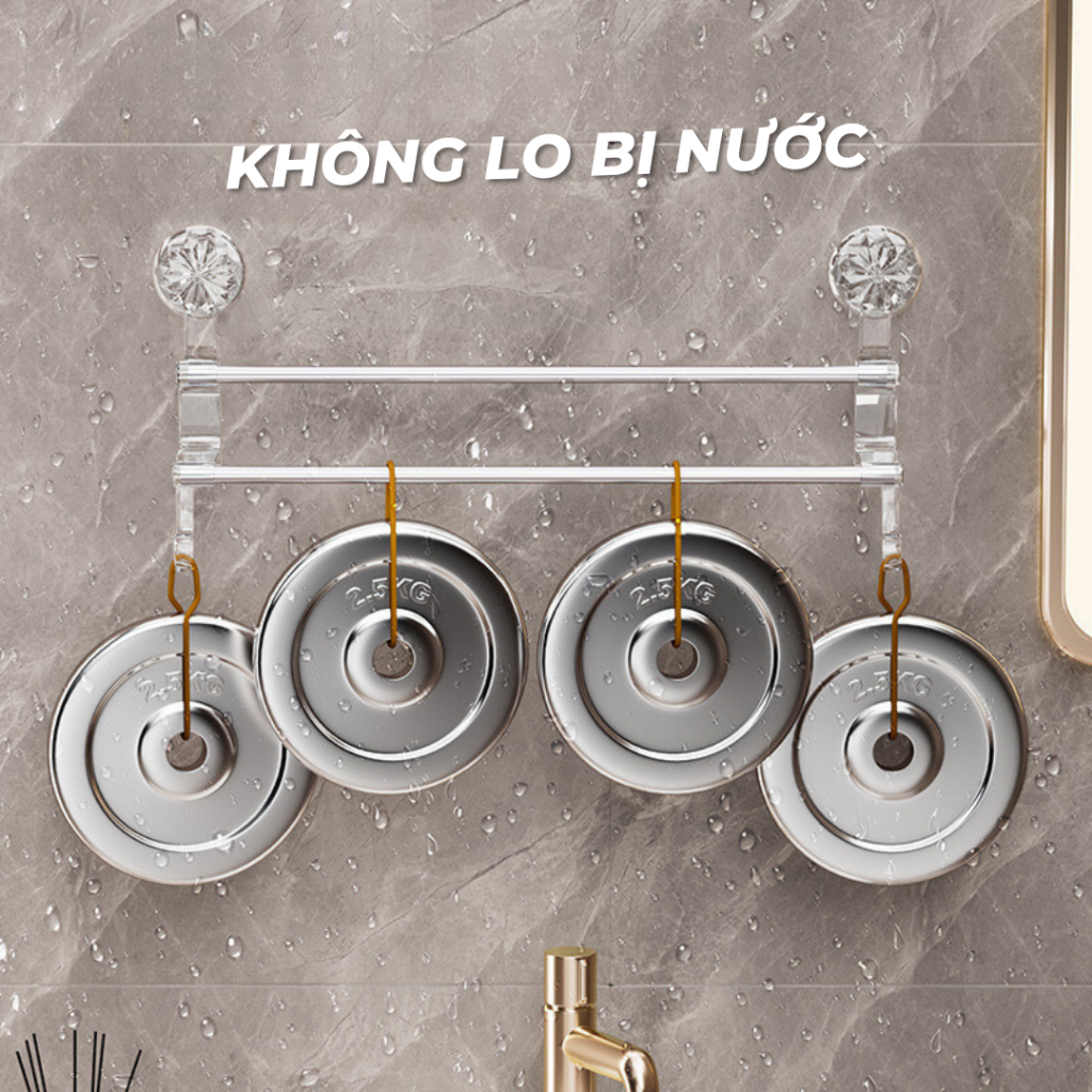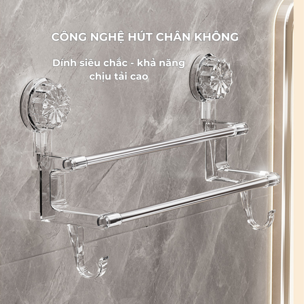 Thanh treo khăn hít tường, hít kính (TK02) có móc siêu chắc sang trọng hiện đại sang trọng