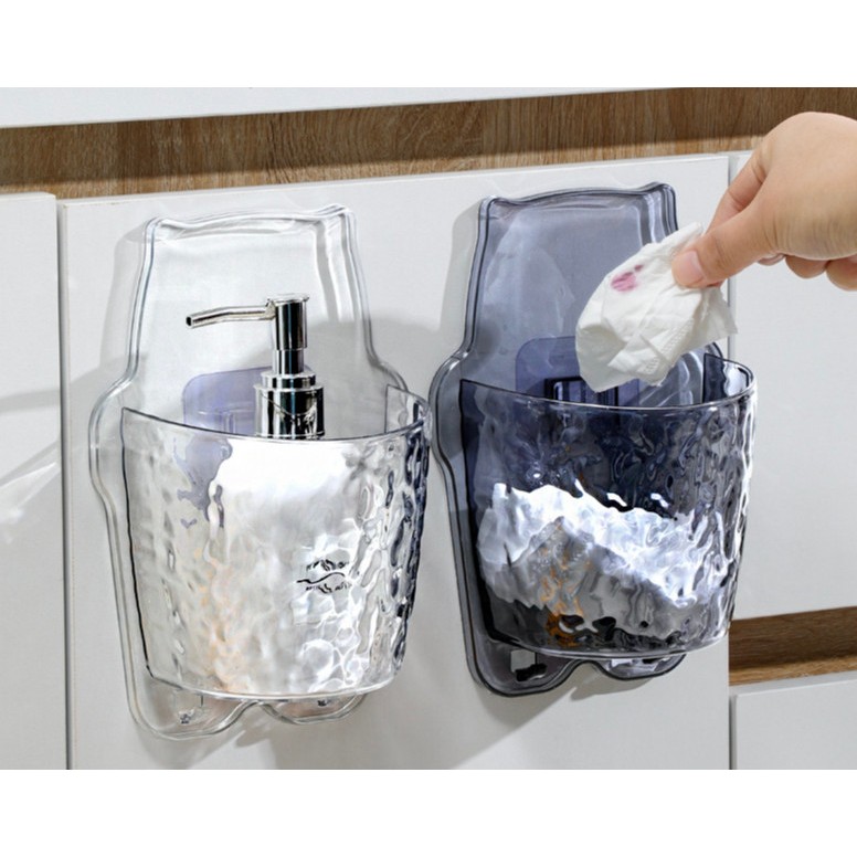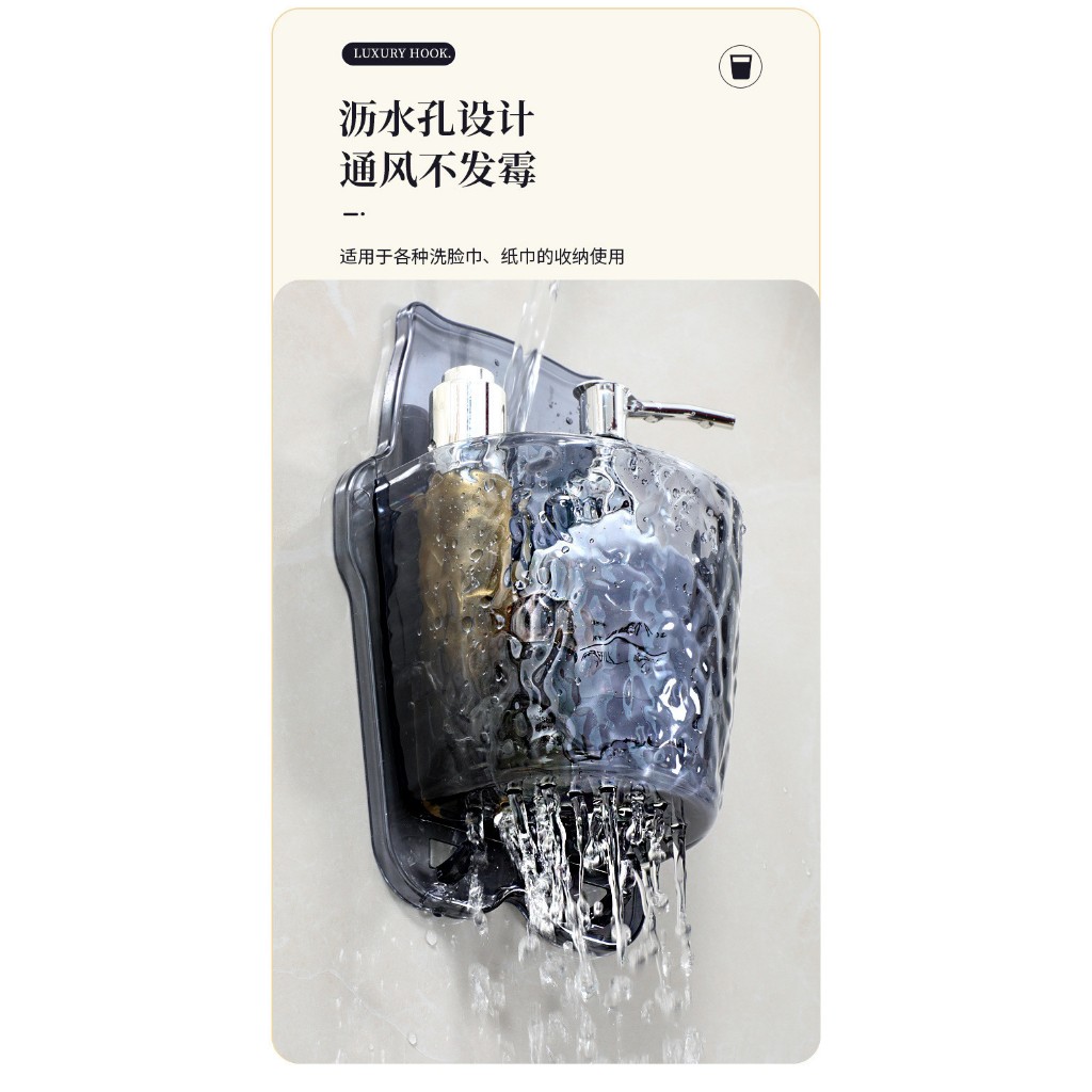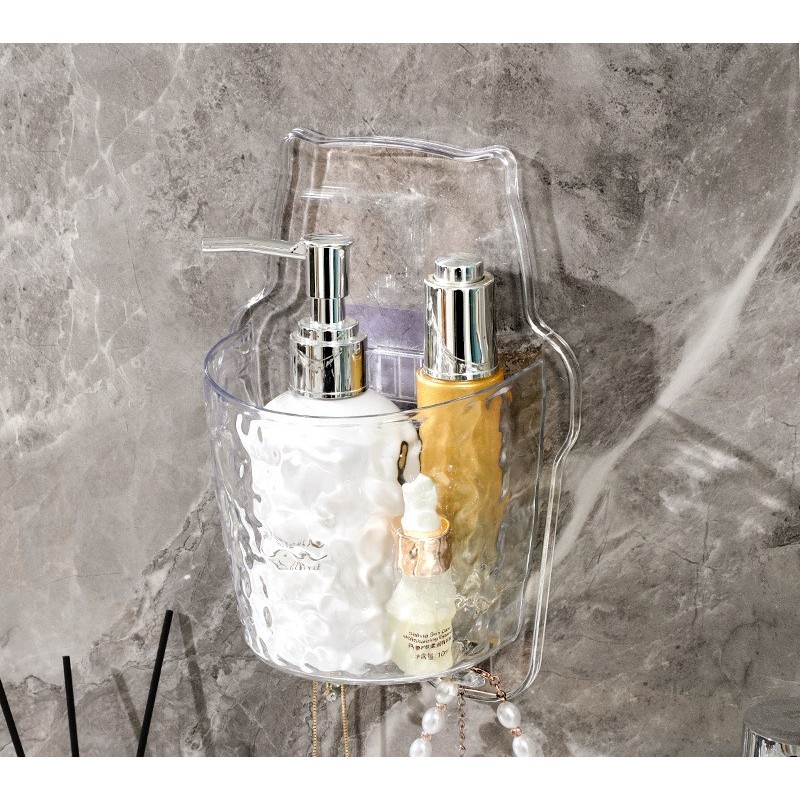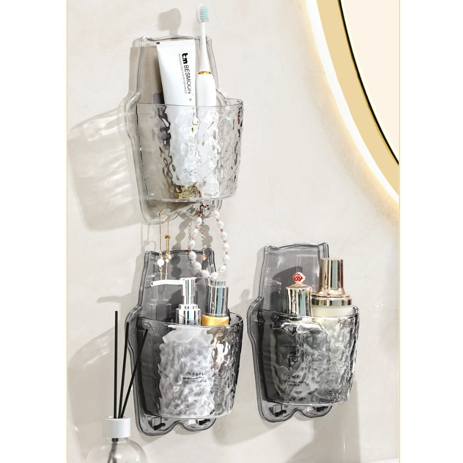 Giỏ đựng kem đánh răng bàn chải không cần khoan đục-Giỏ đựng mĩ phẩm sang trọng tiện lợi có móc treo đồ có lỗ thoát nước