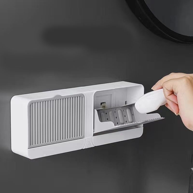Hộp Đựng Xà Phòng (H14) vật dụng nhà tắm dán tường có nắp và ngăn kéo tiện lợi
