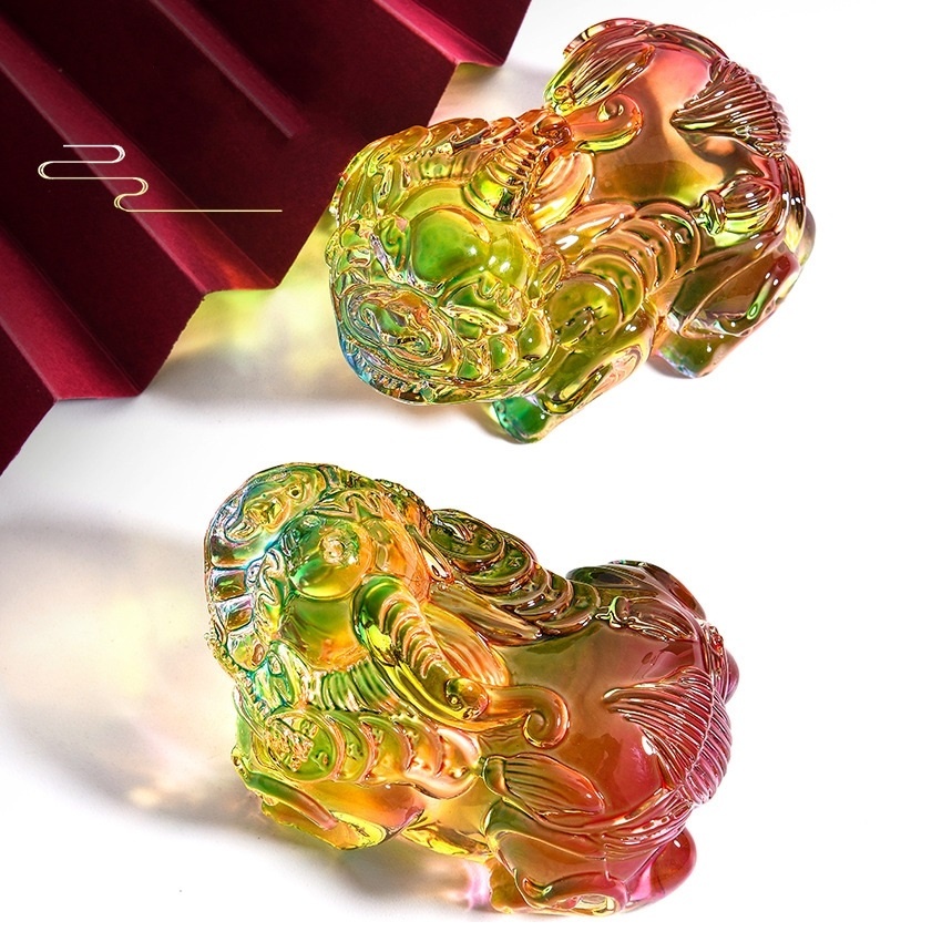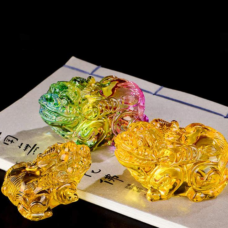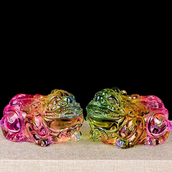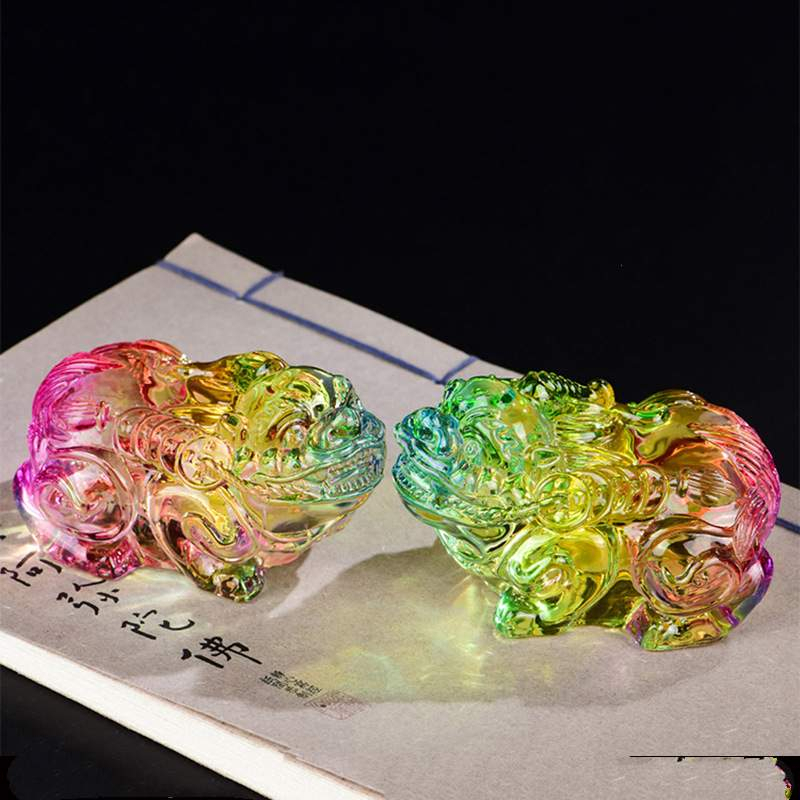 Con Tỳ Hưu Pha Lê 7 SẮC MÀU, Tượng Tỳ Hưu Tài Lộc, Trưng Bày Trang Trí Phong Thủy Nhiều Màu Sắc