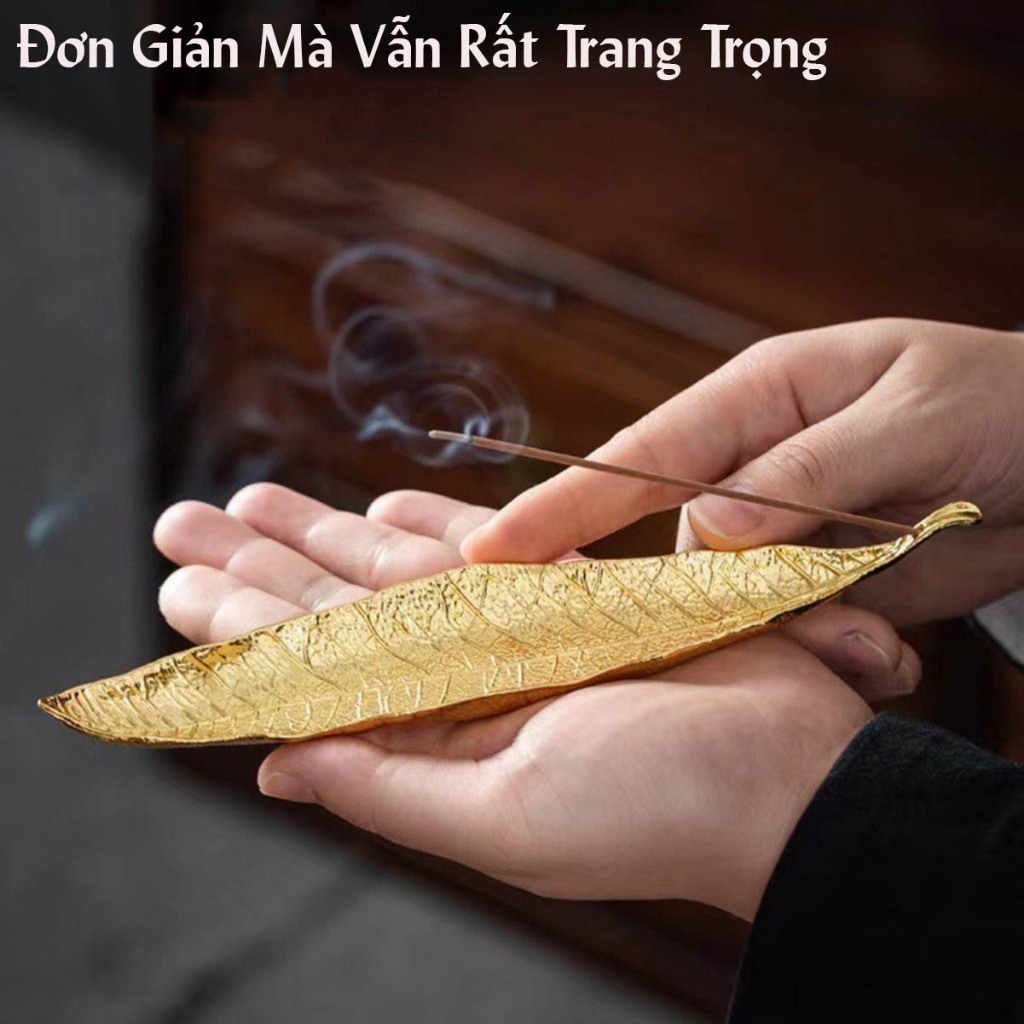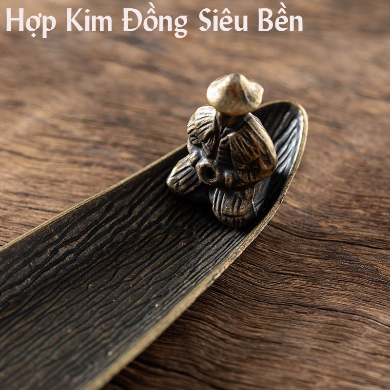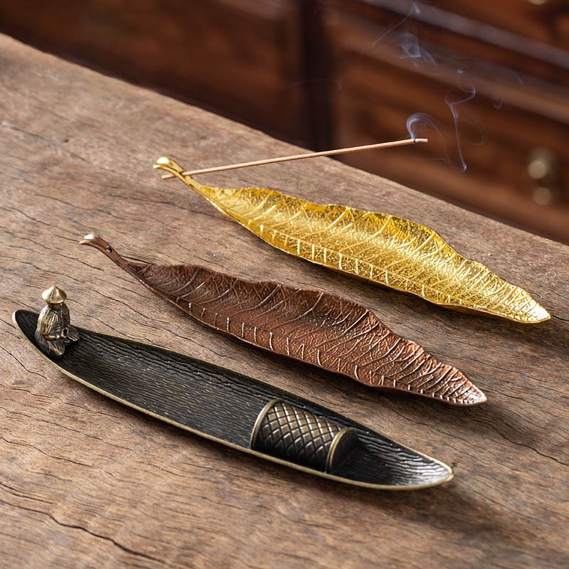 Lư Xông Trầm Đế Cắm Nhang Đồ Trang Trí Phong Thuỷ Thuyền Độc Mộc, Chiếc Lá Sang Trọng