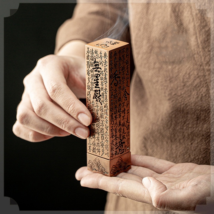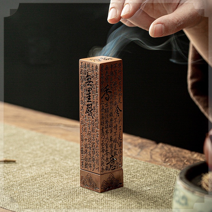 THÁP XÔNG TRẦM (TT01) khắc Tâm Kinh Bát Nhã , Đế Cắm Nhang Trầm Cao 13cm trang trí nhà cửa phong cách trà đạo
