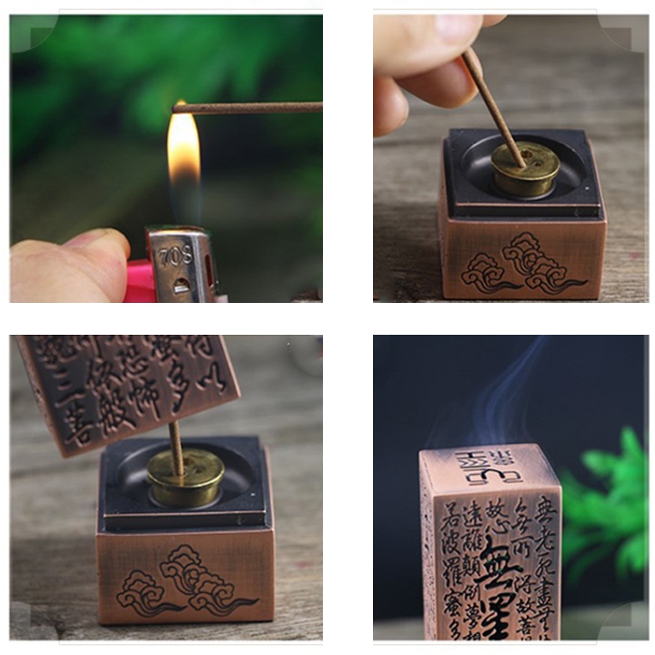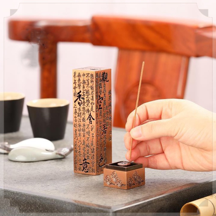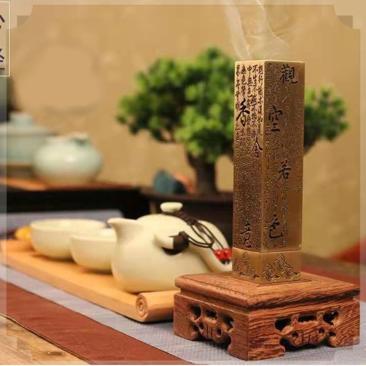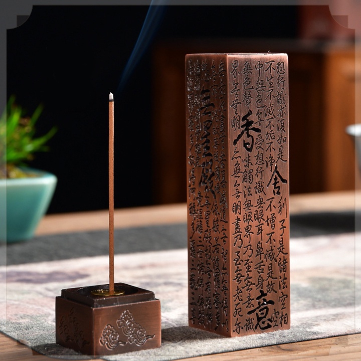 Đế Cắm Nhang Tâm Kinh Bát Nhã , Xông Trầm Cao 13cm Màu Đồng Đỏ Trang Trí Bàn Trà Bàn Thờ Nhỏ