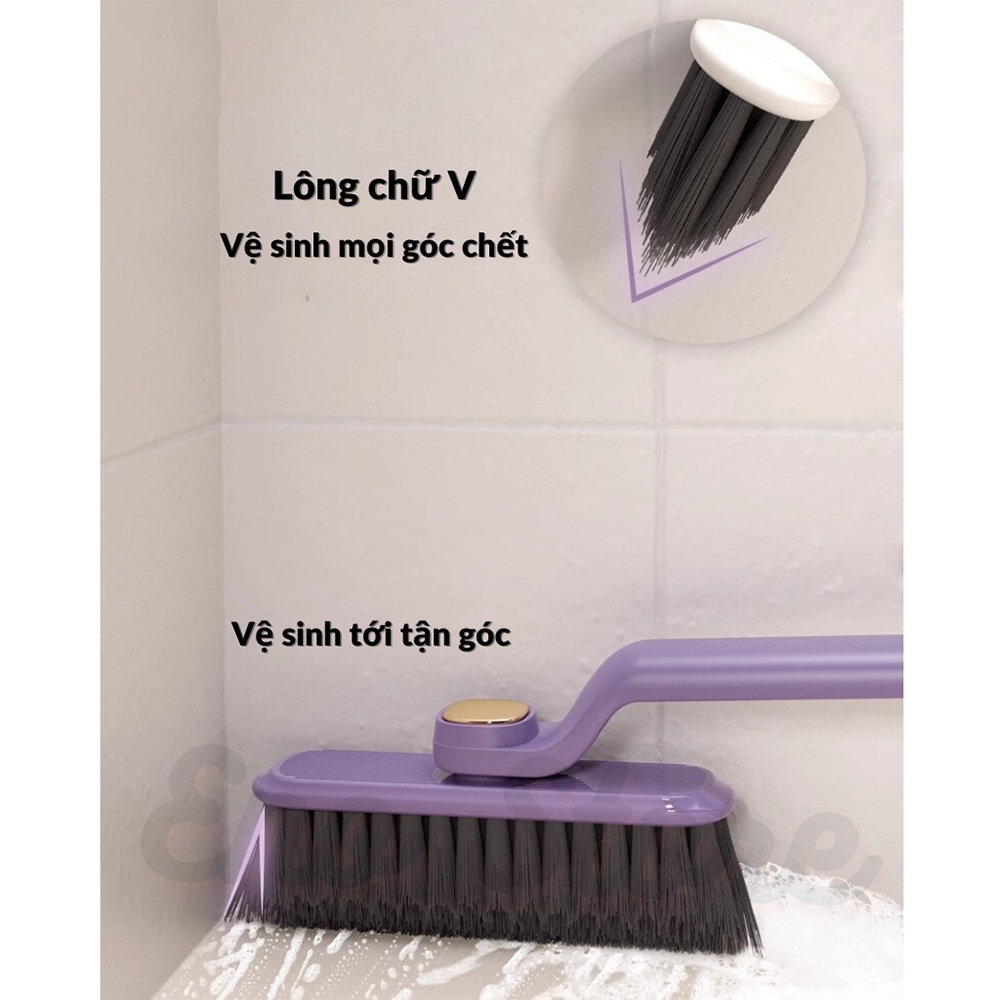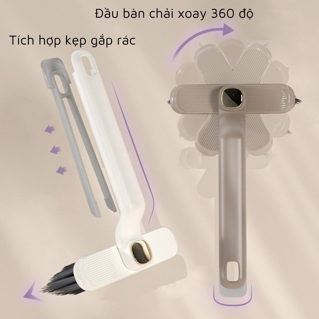 Bàn Chải Làm Sạch Nhà Tắm Xoay 360 Độ Đa Chức Năng, Chổi Cọ Sàn Tích Hợp Kẹp Gắp Rác 2 Trong 1.