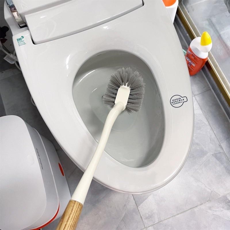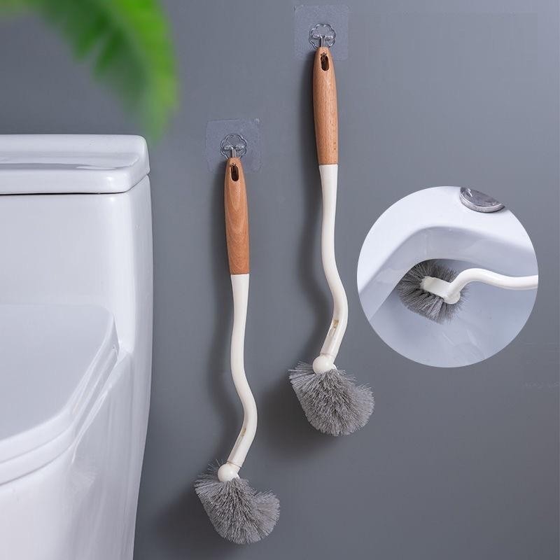 Bàn chải vệ sinh toilet CƯỚC XÙ đầu tròn cong cán gỗ treo tường thông minh (WC)