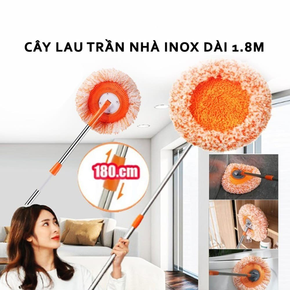THÔNG TIN SẢN PHẨM: Chổi Lau Trần Nhà, Cây Quét Trần Nhà Hình HOA DƯỚNG DƯƠNG (D34) Đa Năng Xoay 180 Độ Cán Inox Dài 150cm