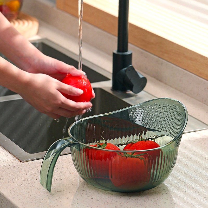 THAU RỔ vo gạo nhựa TRONG SUỐT BẮC ÂU dùng rửa trái cây ráo nước có tay cầm tiện lợi 24×19.5x13cm
