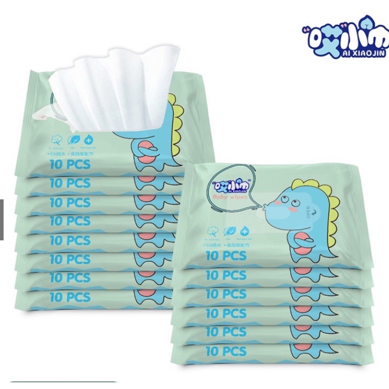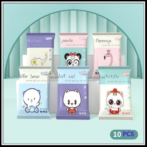 COMBO 10 GIẤY ƯỚT HÌNH THÚ (14x15cm) bỏ túi mini an toàn cho mẹ và bé in hình siêu cute